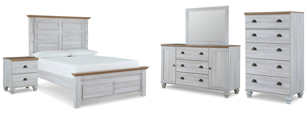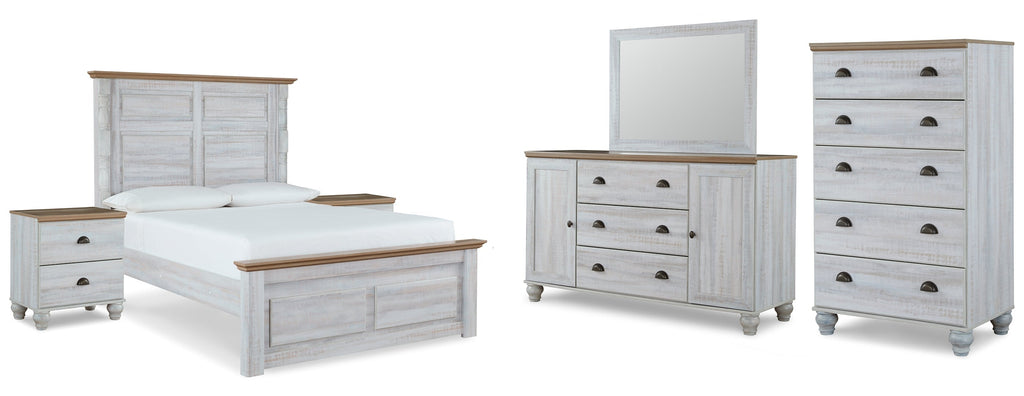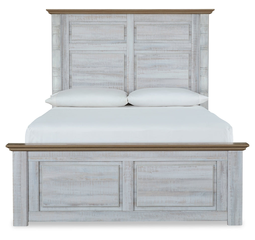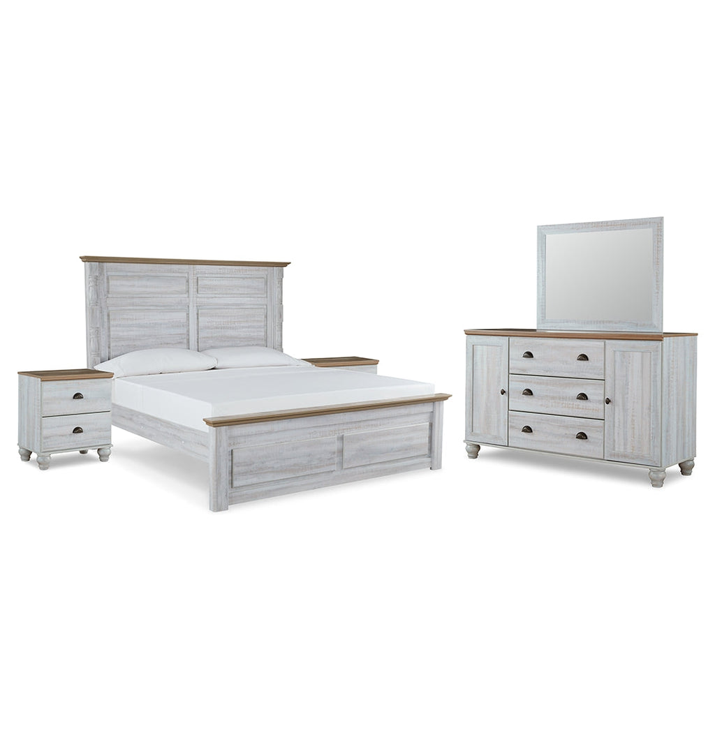 Beautifully simple yet rich with character, this bedroom package is a dream come true. It masters the art of simplicity with a charming two-tone look of weathered white complemented by a replicated oak grain. If farmhouse style is calling your name, answer with this timeless set.