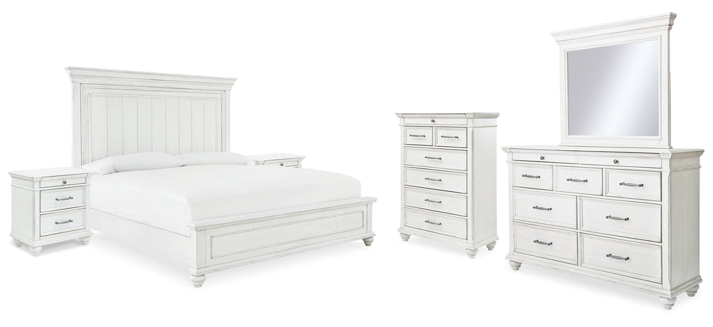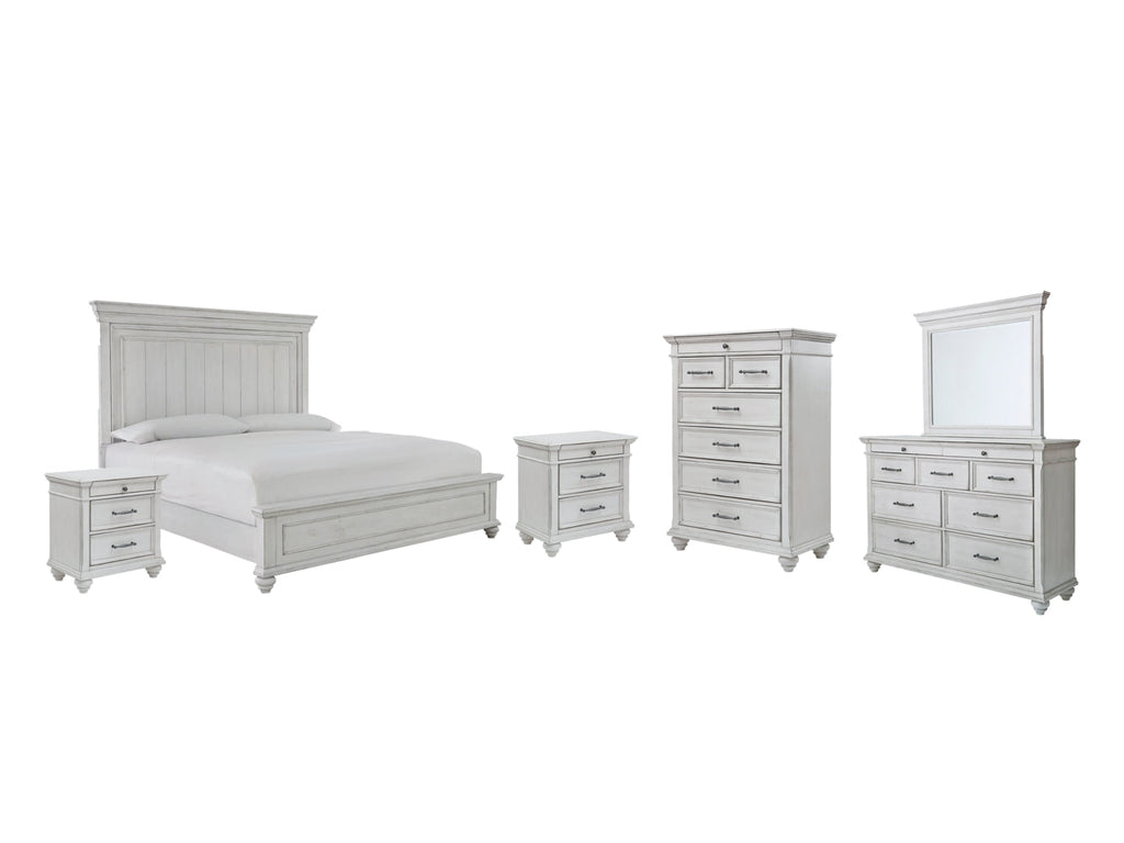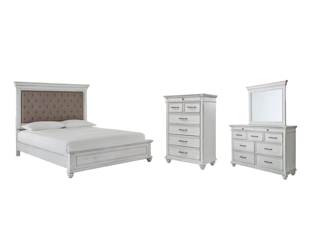 Give your retreat vintage charm with this bedroom set in a beautifully distressed whitewash finish. You'll love the headboard's grand style featuring a picture framed panel. Generously scaled moulding, framed drawer fronts and bun feet enhance the character of this bedroom set—evoking the feel of a quaint cottage escape.
