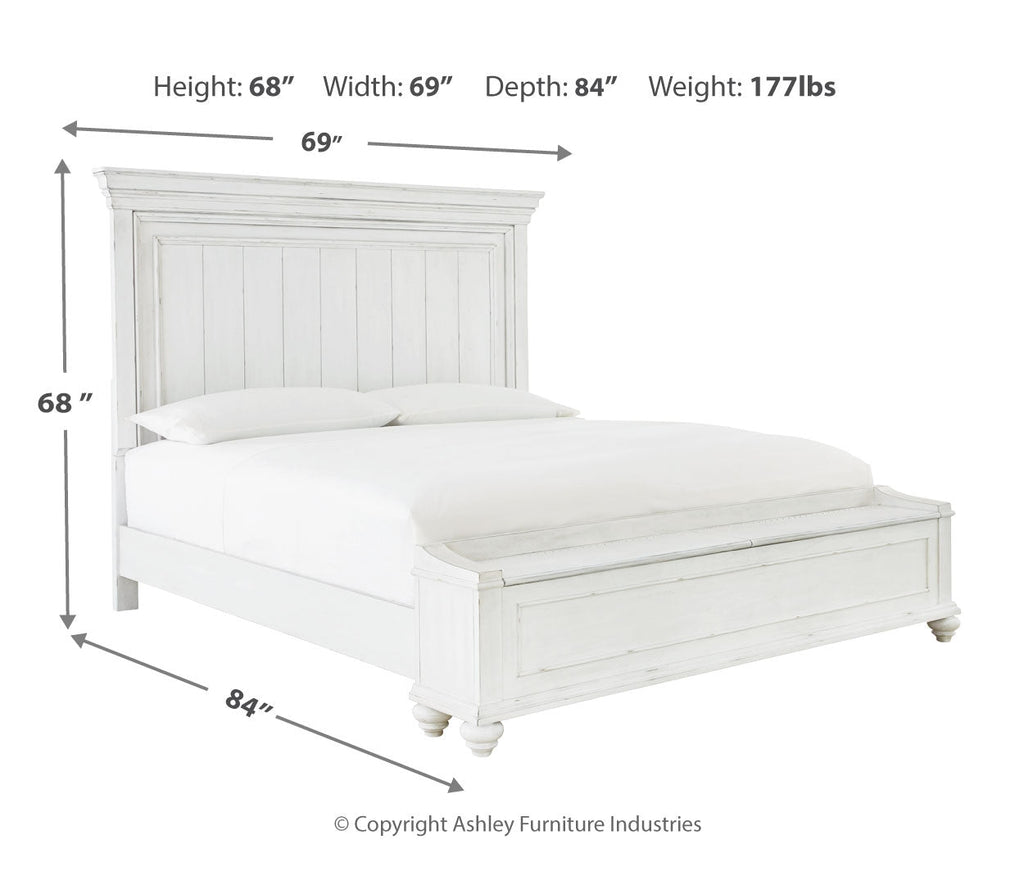 - King panel headboard : 0" : 85" W x 5" D x 68" H