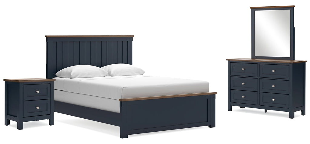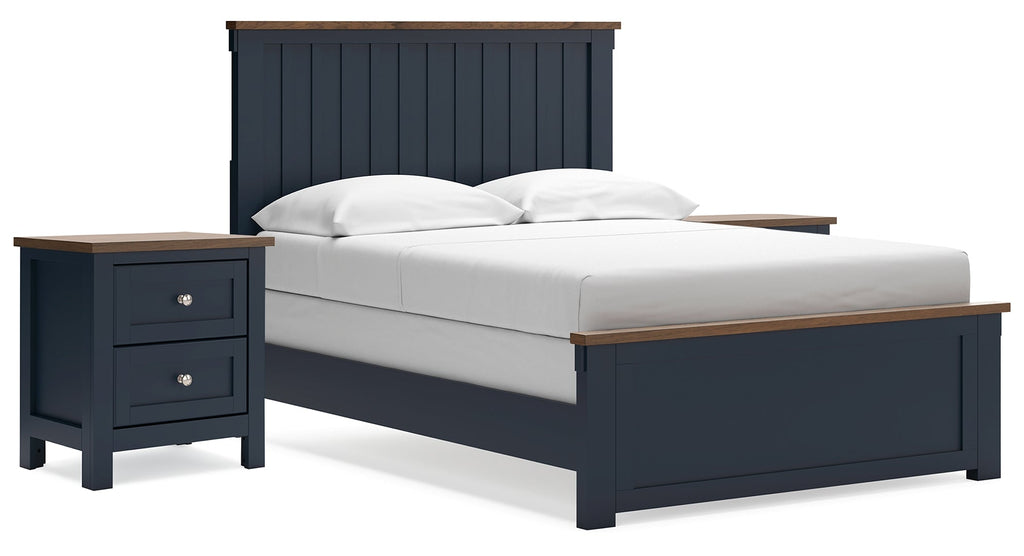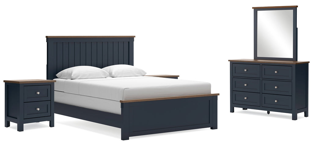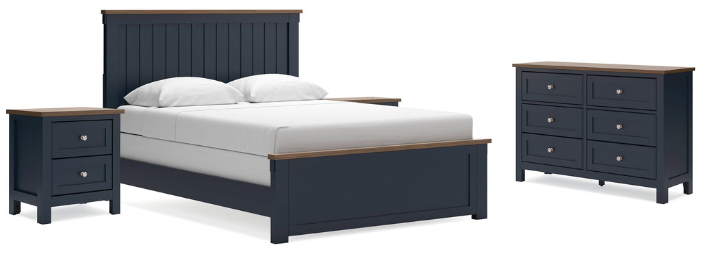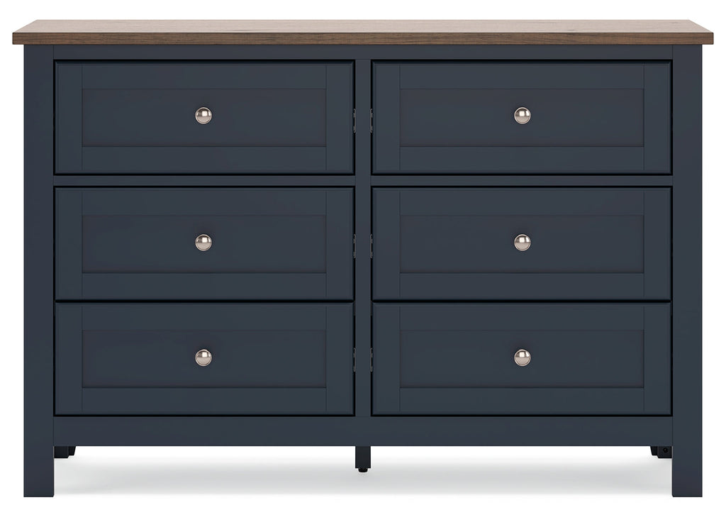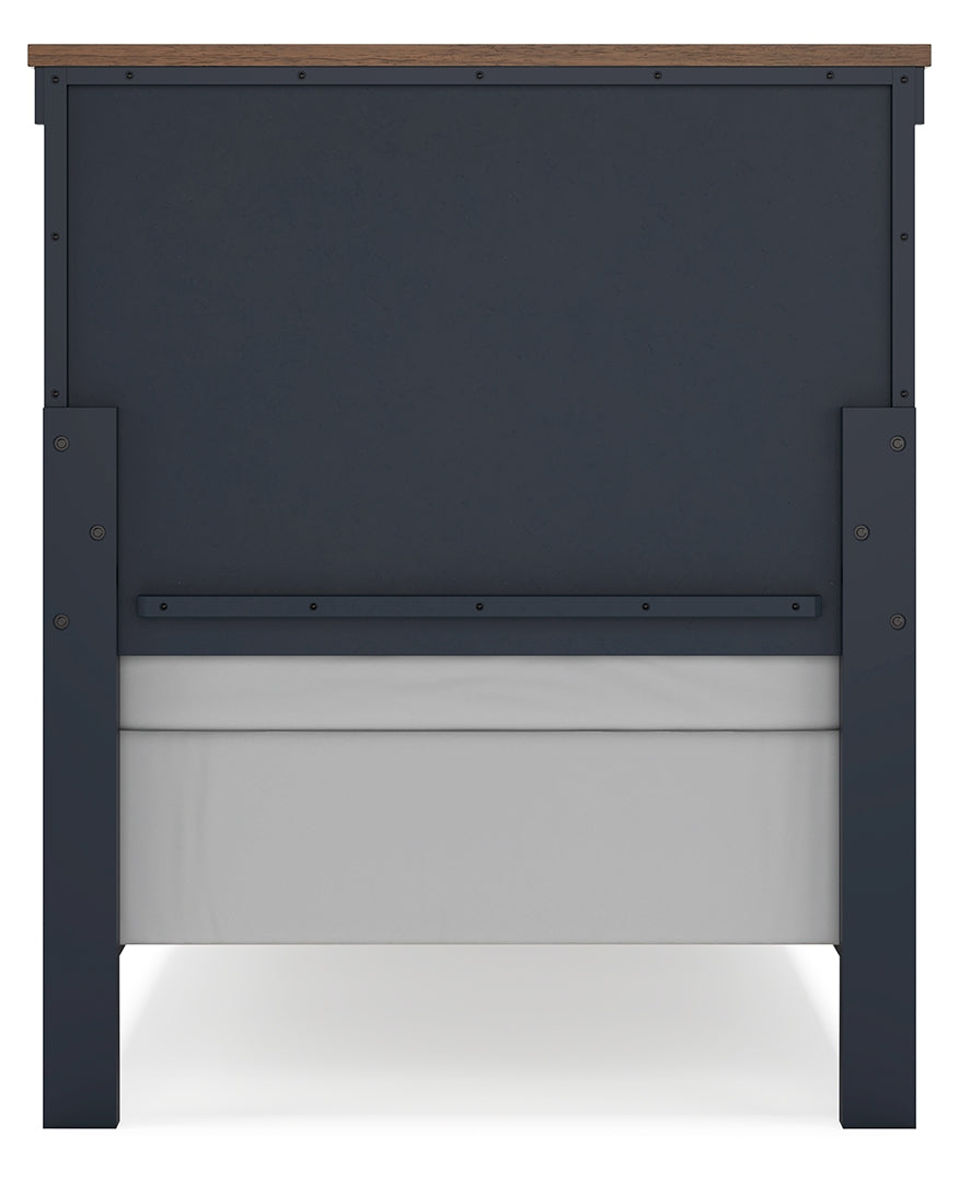 Add homespun charm to your restful retreat with this bedroom package. A modern take on timeless silhouettes, it pairs a dark slate blue finish with light brown tops. Drawer fronts and legs in a classic Shaker style bring an air of beautiful simplicity to the bedroom. Whether it's part of a charmingly curated guest suite or a casually carefree kids room, this set is a welcome addition.