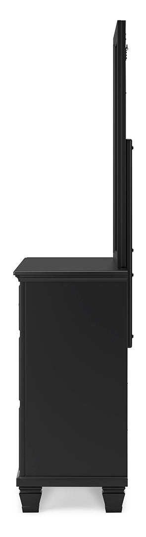 Lanolee California King Panel Bed with Mirrored Dresser