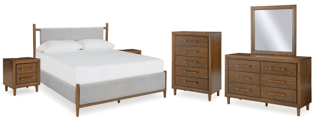 Lyncott California King Upholstered Bed with 2 Nightstands
