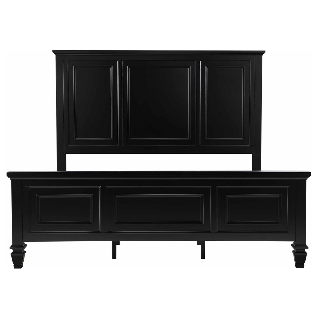 Panel bed featuring intricately carved panels on the headboard and footboard for classic charm