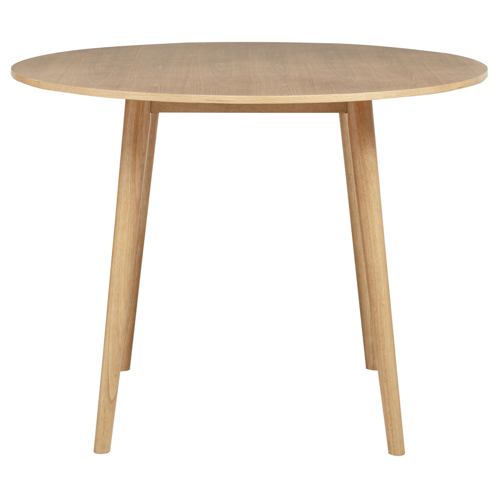 Tabletop rests on tapered legs that offer mid-century styling with a compact footprint