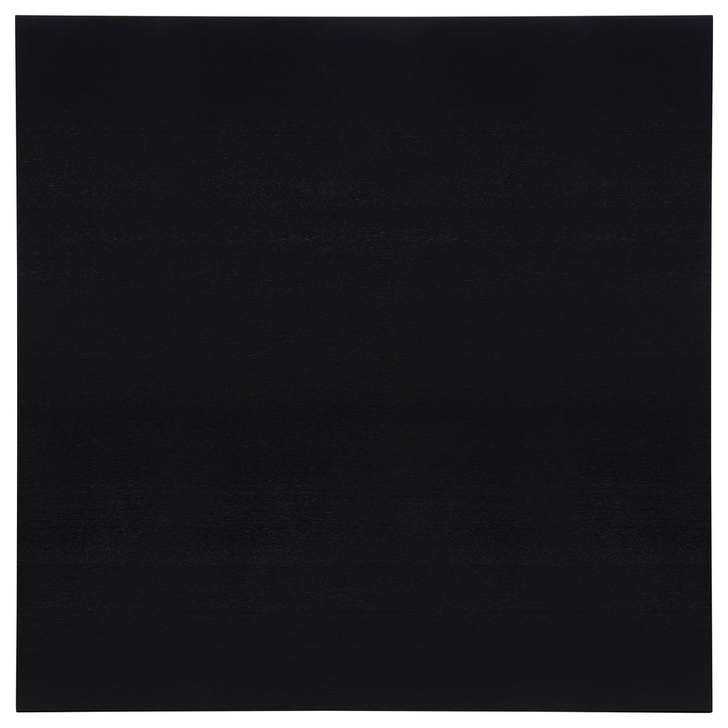 Black wood finish complements the bold silhouette and oak veneer table surface