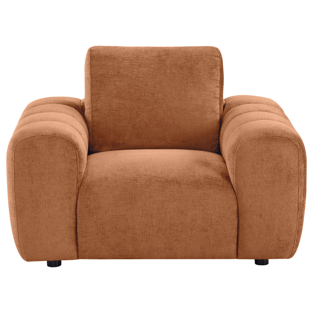 Burnt orange chenille upholstery adds warmth and texture with ultra-soft comfort
