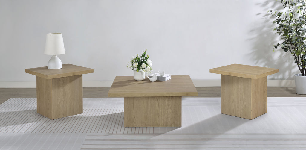 Architectural design meets functional artistry in this occasional table set. With clean geometry and rich black finish, each piece embodies structured modernism. The engineered wood construction is topped with a realistic laminate veneer that captures the look of natural grain. From cocktail table to accent table, the sculpted silhouettes offer grounded beauty and balanced proportion for any contemporary living room.