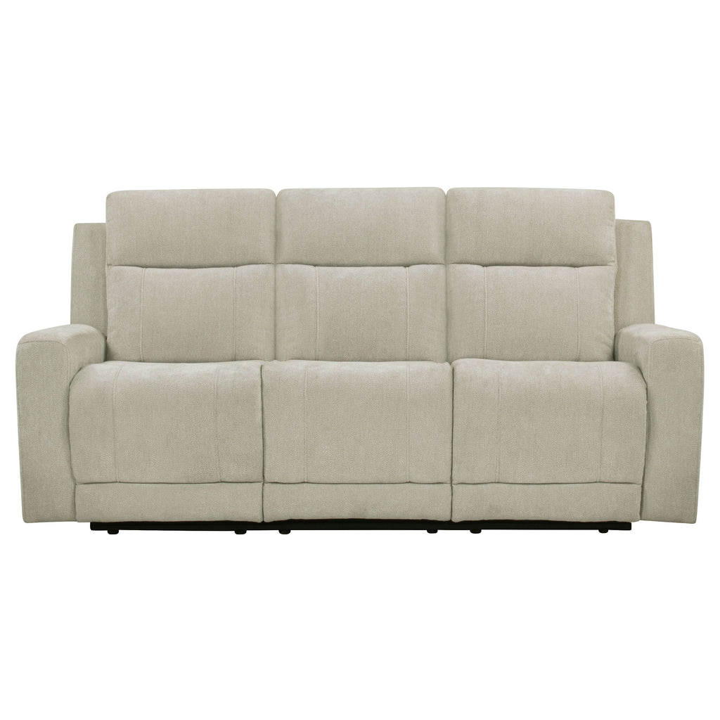 Sink into the soft embrace of this chenille power reclining sofa, where comfort meets thoughtful design. Smooth dual recliners respond at your touch, while a home button gently returns you to a closed position. Built-in USB-A and USB-C ports keep your devices charged as you relax. Wrapped in richly textured chenille and supported by a durable metal frame, this sofa brings modern ease and everyday indulgence to your living space.