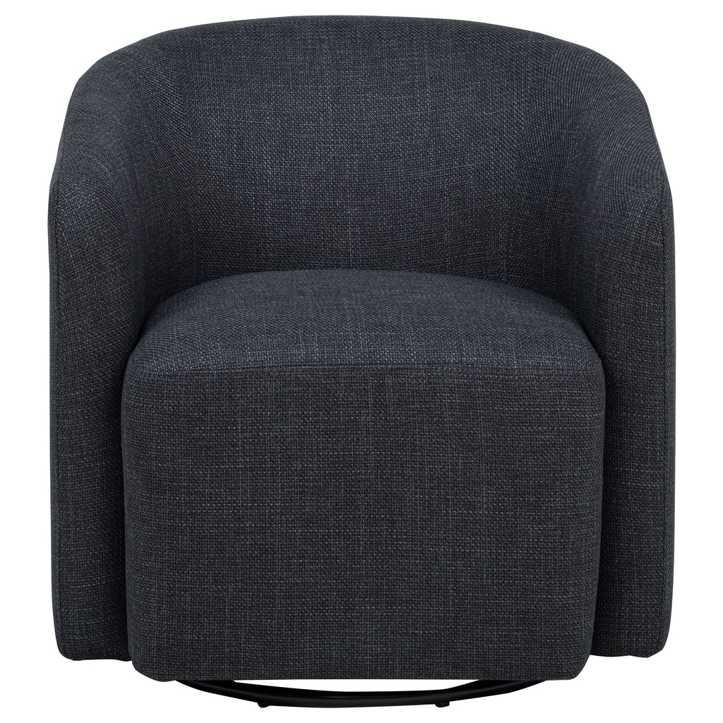 Swivel accent chair with barrel-style back for modern lounge or reading nook use