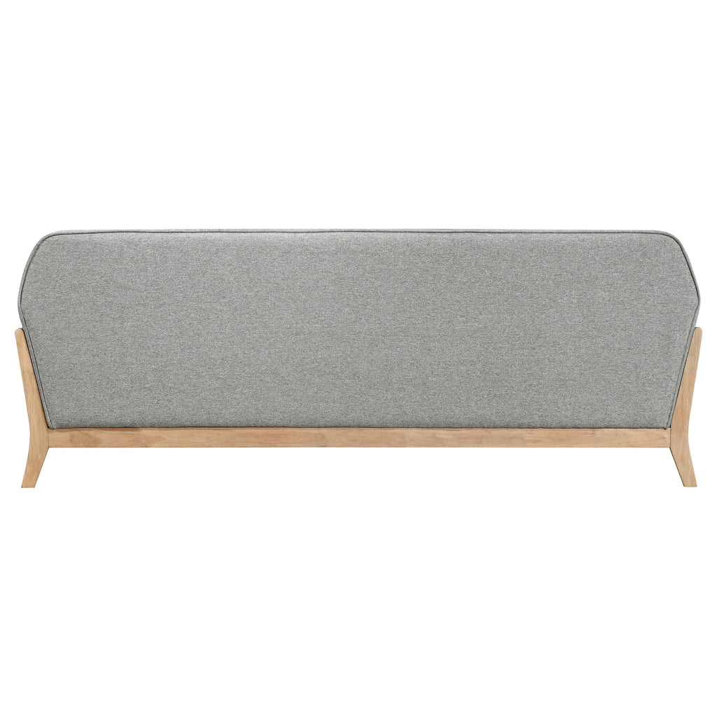 A seamless fusion of modern curves and vintage roots, this sofa lends refined presence to any space. Flared arms and a smooth, contoured backrest exude retro charm, while plush cushions offer an inviting retreat. A light-toned wood frame crafted from solid rubberwood surrounds the base in sculptural support. Upholstered in soft polyester fabric, this tailored sofa balances comfort and design for stylish lounging in living rooms or cozy nooks.
