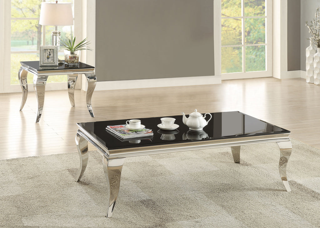 This coffee table set brings modern glam to your living space with tempered beveled glass tops and polished stainless steel cabriole legs. The reflective finish and gracefully curved Queen Anne style legs create a harmonious blend of timeless elegance and a majestic ambiance. Ideal for refined interiors, this set combines an ultra-modern aesthetic with durable practicality. Smooth, easy-to-maintain surfaces ensure it remains a stylish and functional centerpiece for any sophisticated space.