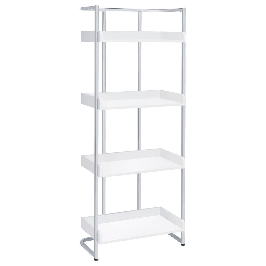 Contemporary four-shelf bookcase with rimmed trays and open back design