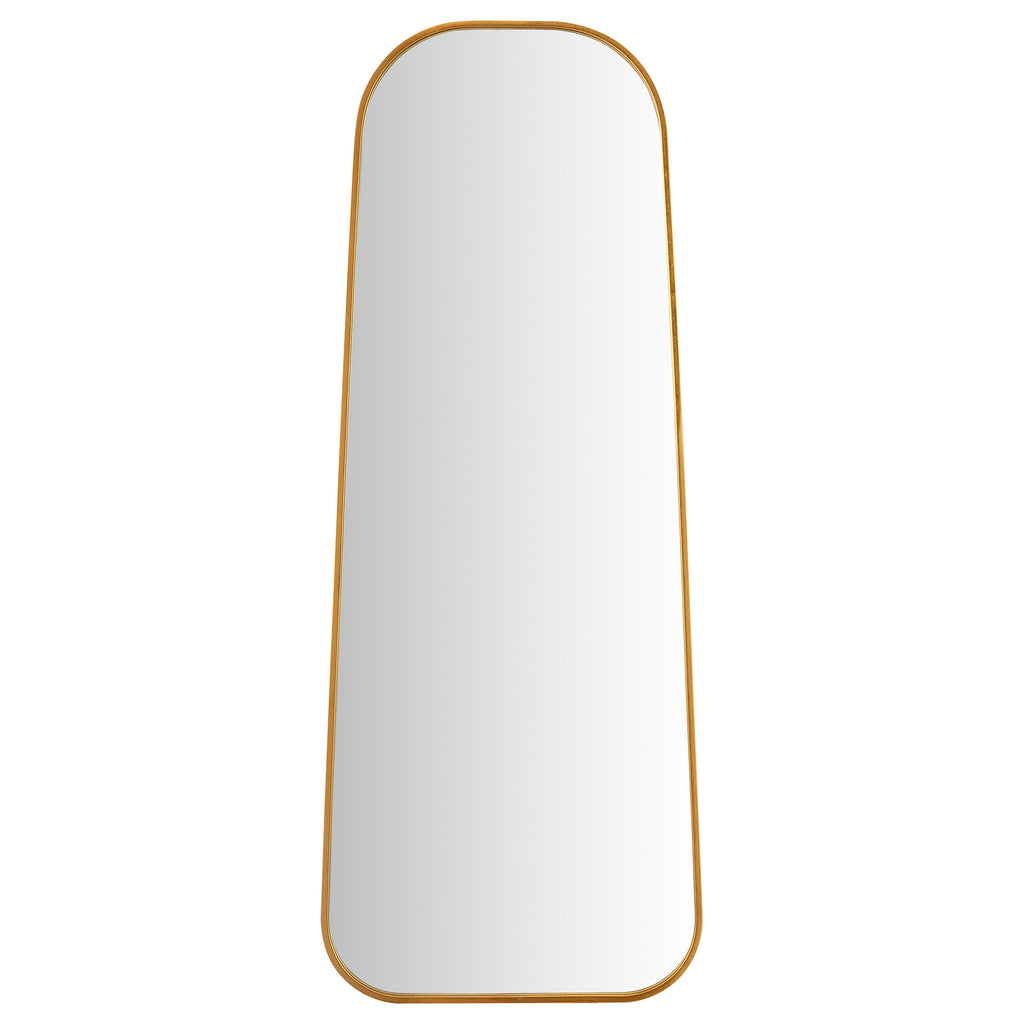 A fashion-forward look takes on simple style for perfect balance in a casual bedroom or dressing space. This floor mirror delivers a well-rounded design that dresses up or tones down a semi-formal or casual living area. A full-length design doubles the convenience of this elegant floor mirror, a suitable option for retaining the simplicity you crave yet spiced up with a sleek profile. A rounded edge silhouette and antique gold metal frame embellish stylish and sophisticated personality. Choose this mirror for its artistry and functionality.