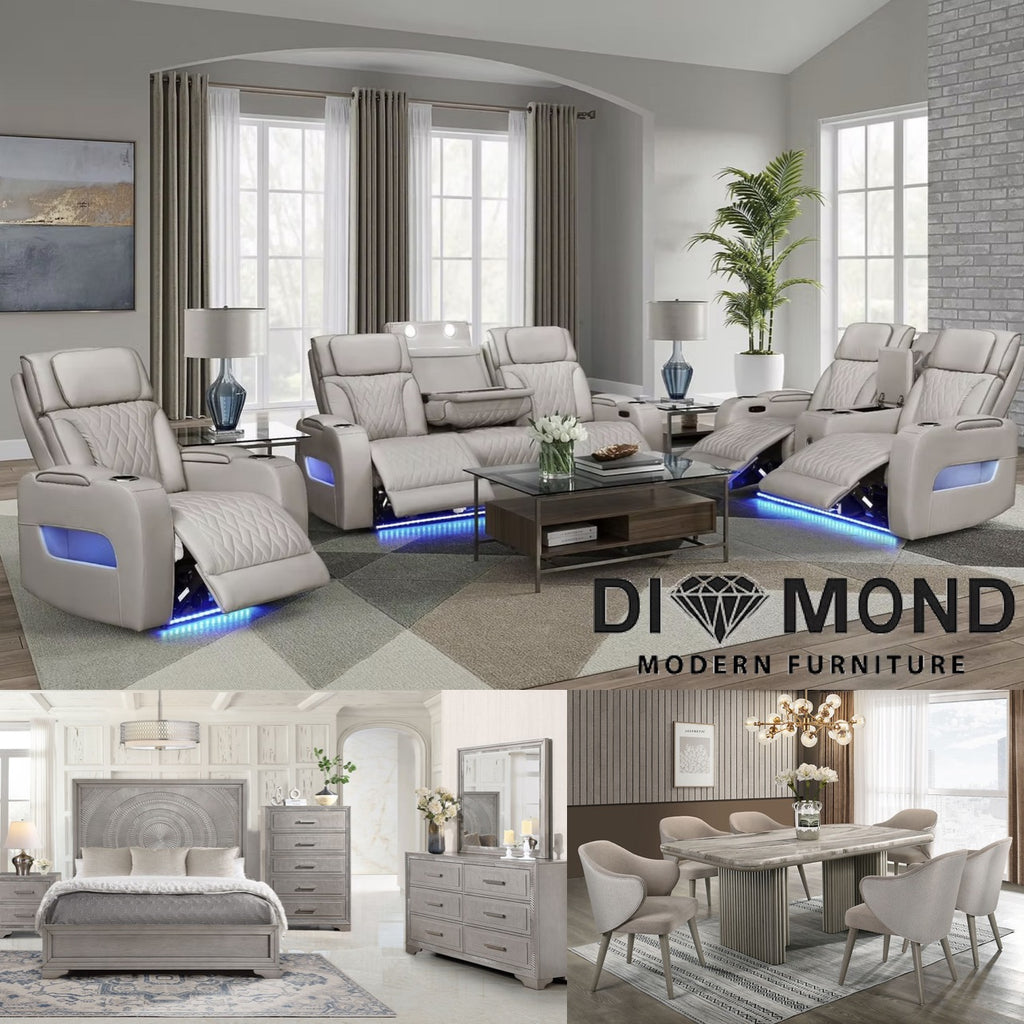 3-Piece Recliner Living Room Set, 7-Piece Modern Dining Set & Queen Bed – Complete Home Furniture Package