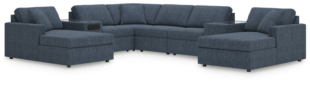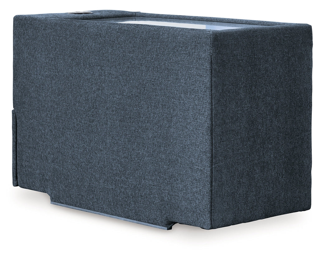 - Includes 3 modular pieces: left-arm facing corner chair, audio console with storage and right-arm facing corner chair