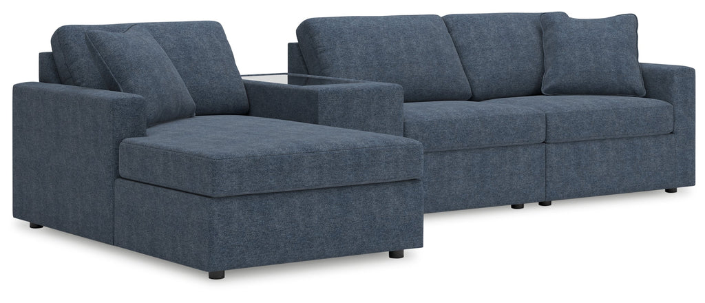 - Includes 4 modular pieces: left-arm facing corner chaise, 2 armless chairs and right-arm facing corner chaise