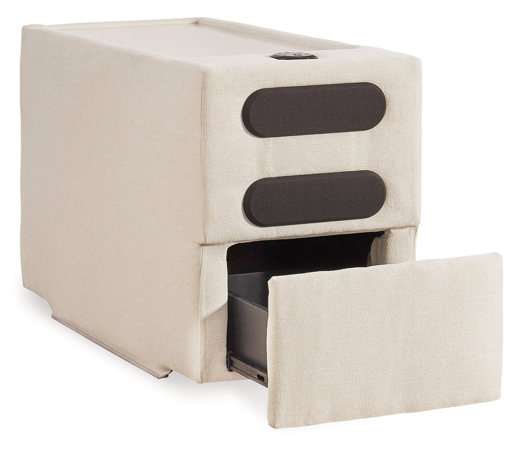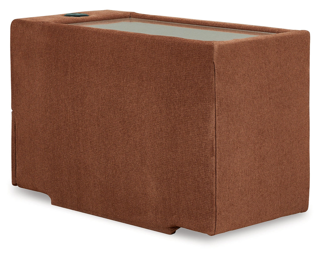 Modular pieces can float anywhere; sides are finished (with no connectors)