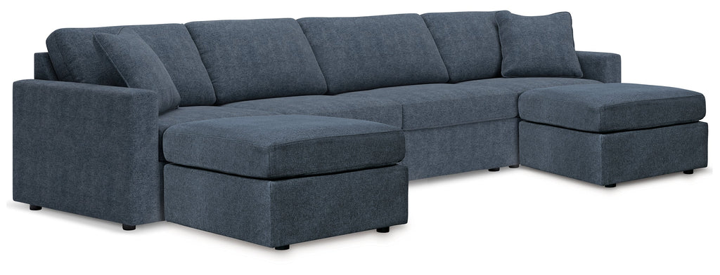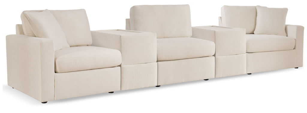 Includes 4 modular pieces: left-arm facing corner chair, 2 armless chairs and right-arm facing corner chair