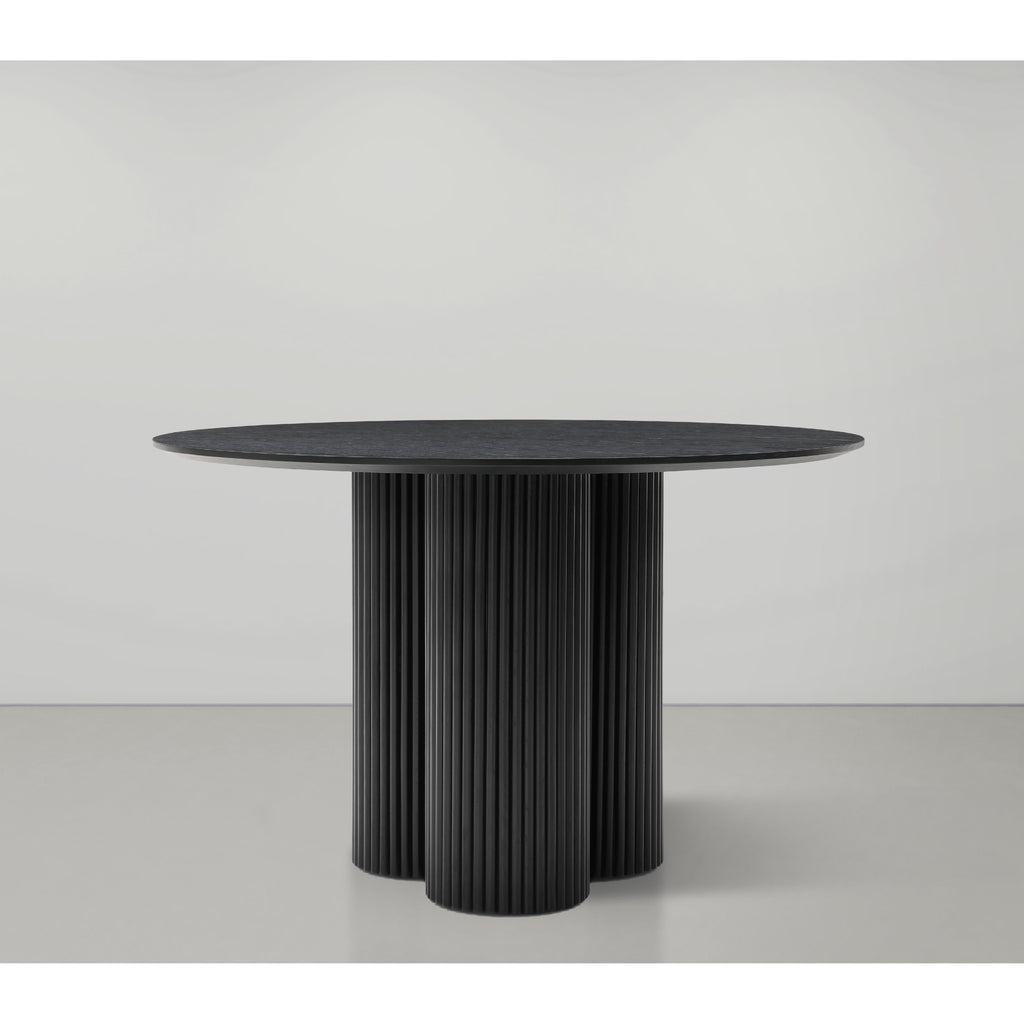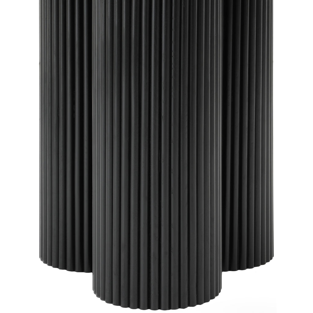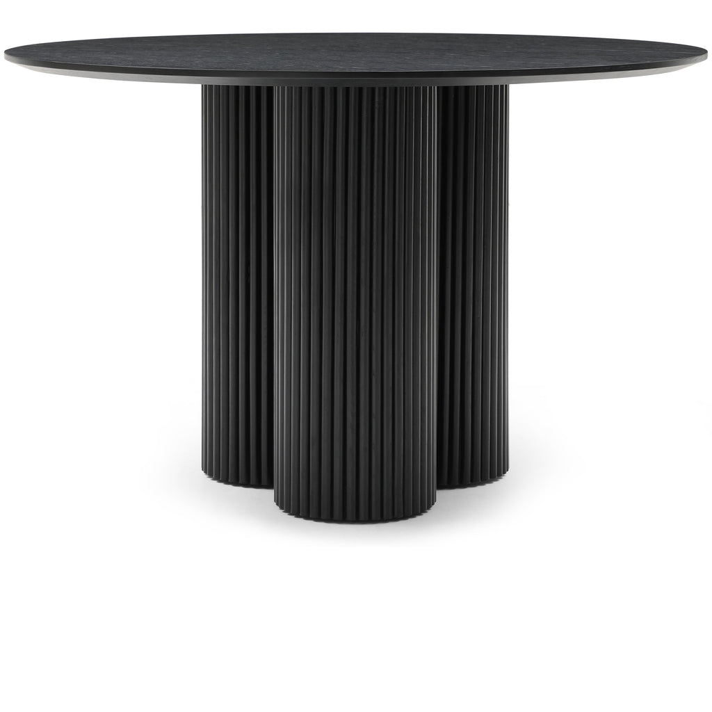 Gather your favorite peeps around this Simba dining table. A sleek shade of black, this handsome mid-century designed table has a modish look that's perfect for both contemporary and traditional dining rooms. The black oak veneer table top measures 48 inches, giving you oodles of room for place settings and lots of elbowroom for dinner guests. Made from ash wood and wood products, this sturdy table has a solid wood fluted base for added aesthetics.