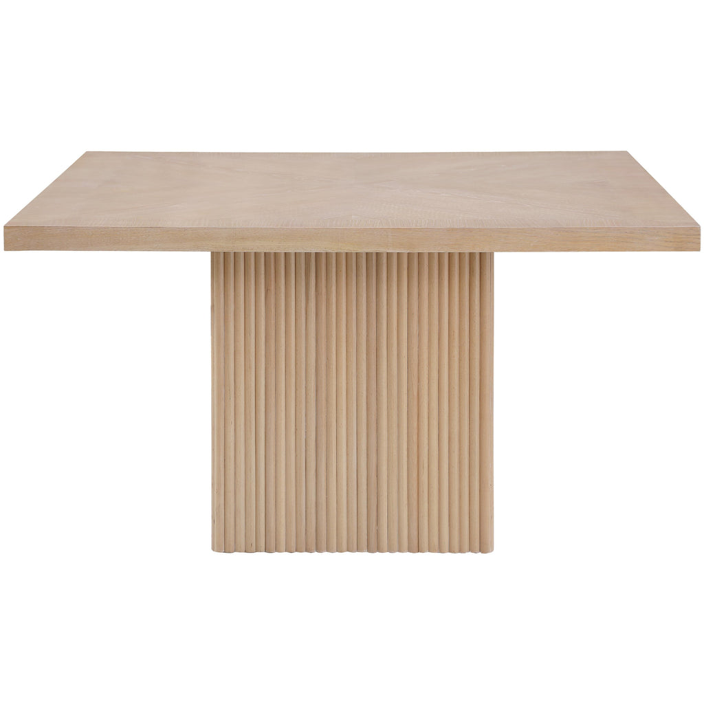 Give your dining room or eat-in kitchen a casual vibe with this Belinda dining table. A solid wood base and resilient construction offers impeccable durability and remarkable beauty. The square top rests on the fluted base, providing oodles of elbow room for family and friends to get comfortable while they nosh on their meal. The chair's made from wood and wood products for resilience, and its neutral natural finish lets it mesh well with the dining chairs or stools of your choice.