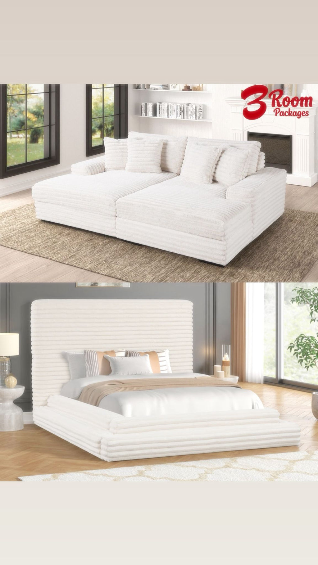 Discover effortless interior design with the ultimate pairing from 3RoomPackages. The Nora Package couples our stunning Mariah Beige Platform Bed with a matching luxurious beige couch, instantly crafting a tranquil, modern sanctuary in your home.