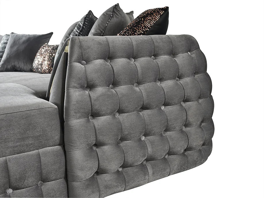 The Sicilya Sectional in gray brings a sophisticated and versatile tone to your living room, effortlessly blending with various décor styles. Perfect for creating a stylish and inviting atmosphere, this sectional offers both visual appeal and ultimate comfort.